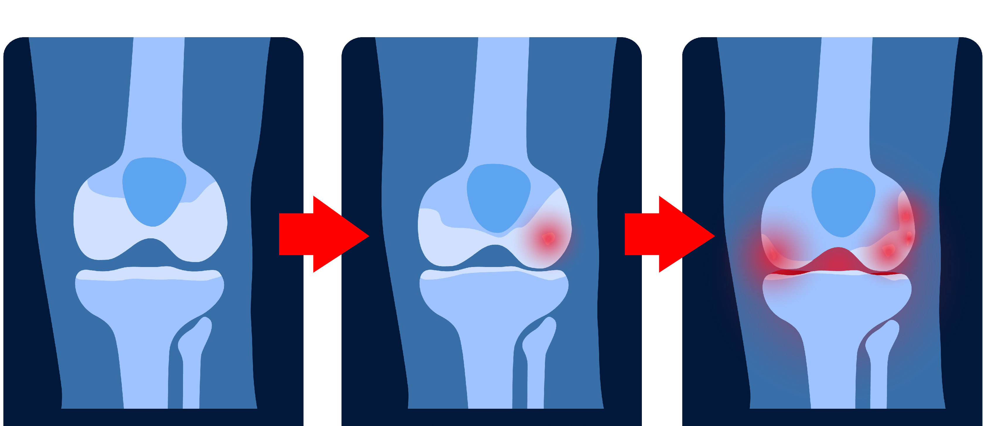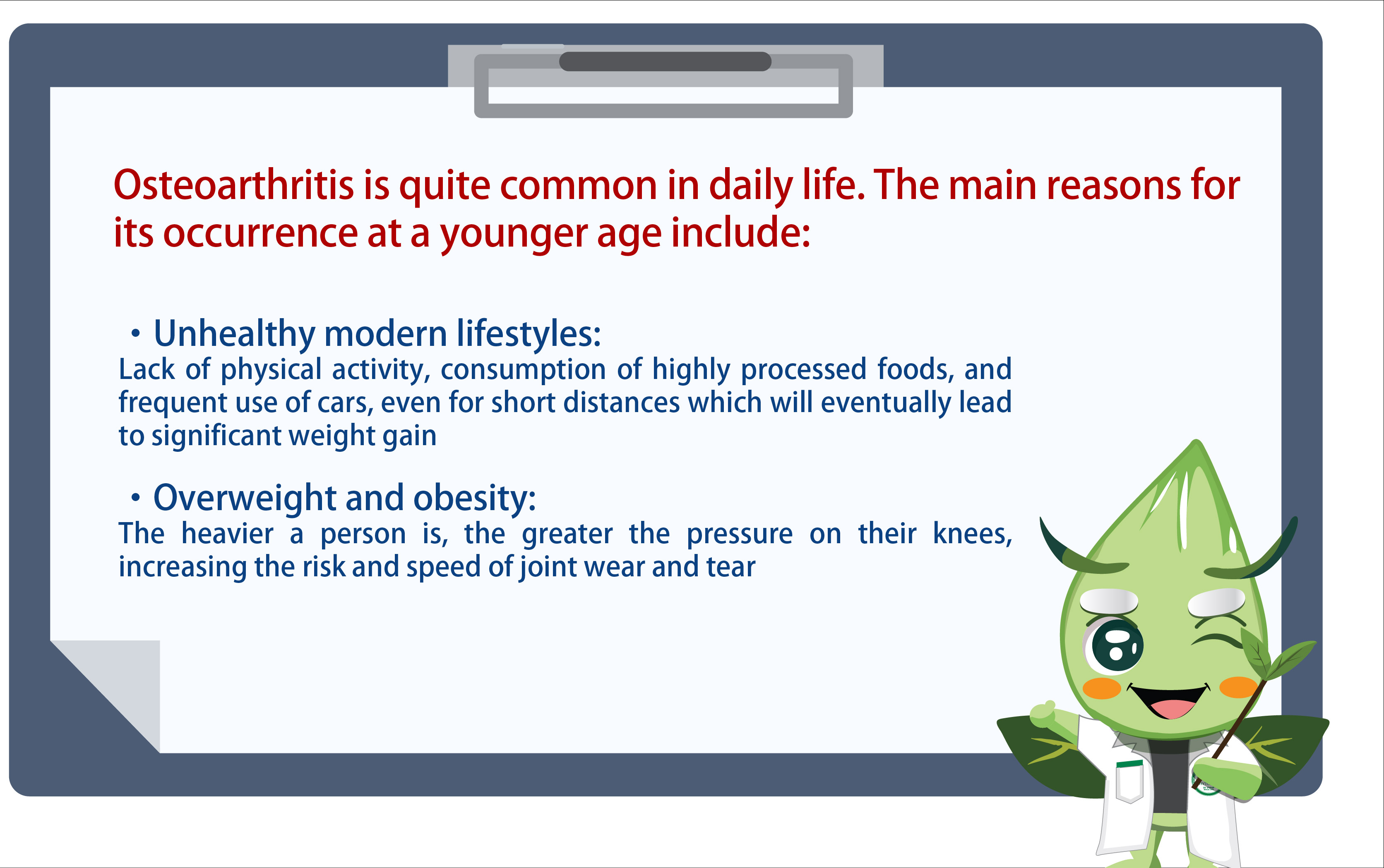 Osteoarthritis, also known as degenerative joint disease, is one of the most common forms of arthritis. Imagine if you bought a brand-new sports car, you'd be excited to drive it every day naturally. But after a while, the tyres begin to wear down, and other car parts start to show signs of wear. Our joints are similar to this car. Each joint has cartilage, which acts like a cushion, helping to absorb pressure and reduce friction. When the cartilage wears down, the joint can swell, and in severe cases, bones may rub against each other, causing pain and stiffness. So, when we walk daily or engage in regular activities, prolonged use can cause "wear and tear," leading to pain, stiffness, or even swelling, especially affecting our mobility.