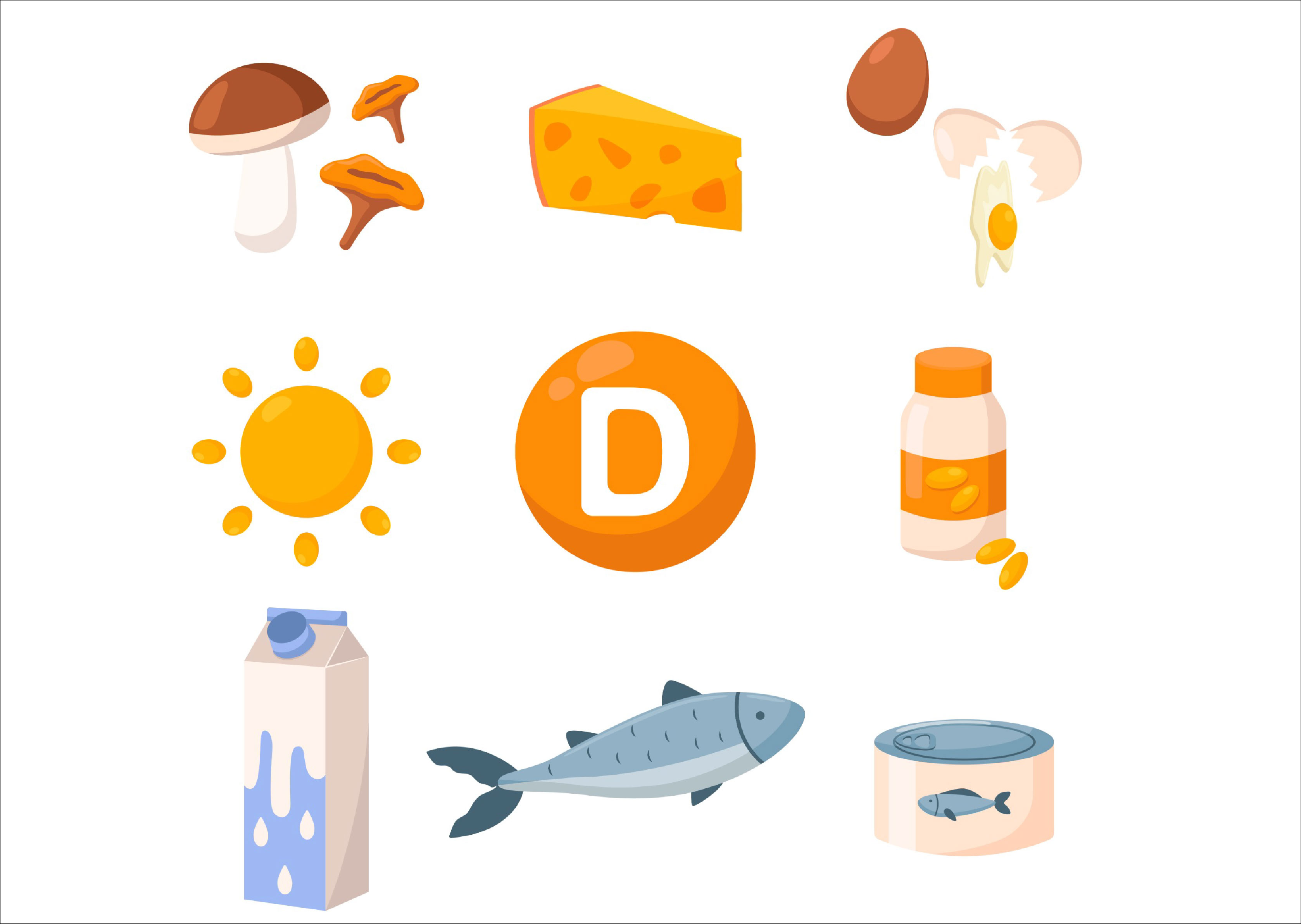 Helps with calcium absorption and strengthens bones. While sunlight is a natural source of vitamin D, it can also be found in foods such as salmon, eggs, mushrooms, and milk.