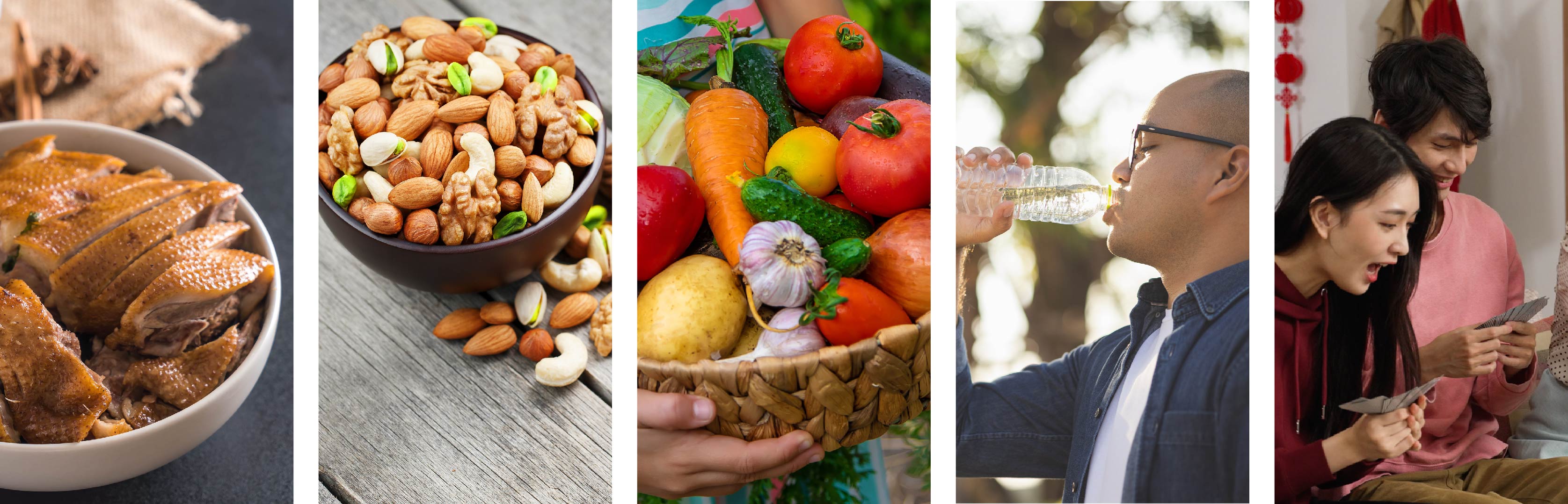 Enjoy festive treats such as rice cakes, glutinous rice balls, and New Year snacks (e.g., pineapple tarts, peanut cookies and so on) in moderation. Pair these foods with high-fiber or high-protein options (e.g., vegetables or tofu) to slow the increase in blood sugar.