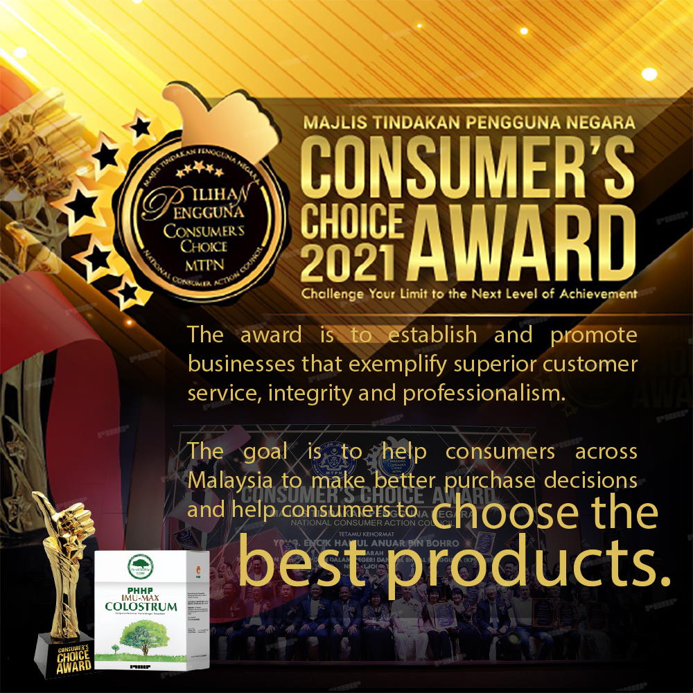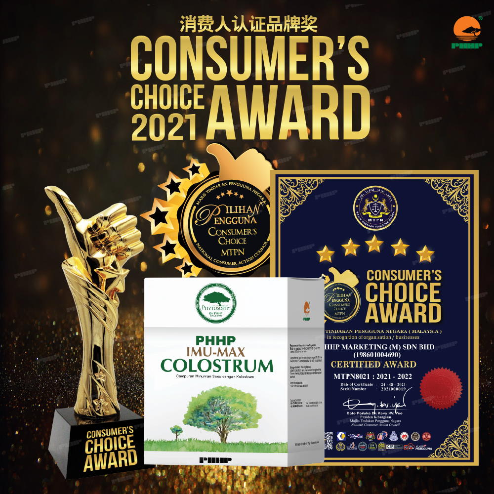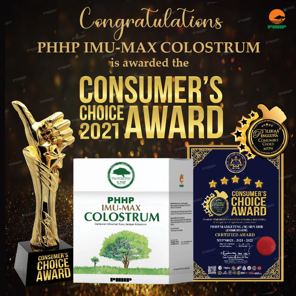 Congratulations to PHHP for being awarded The Consumer’s Choice Award 2021 with Phytosophy Imu-Max Colostrum!