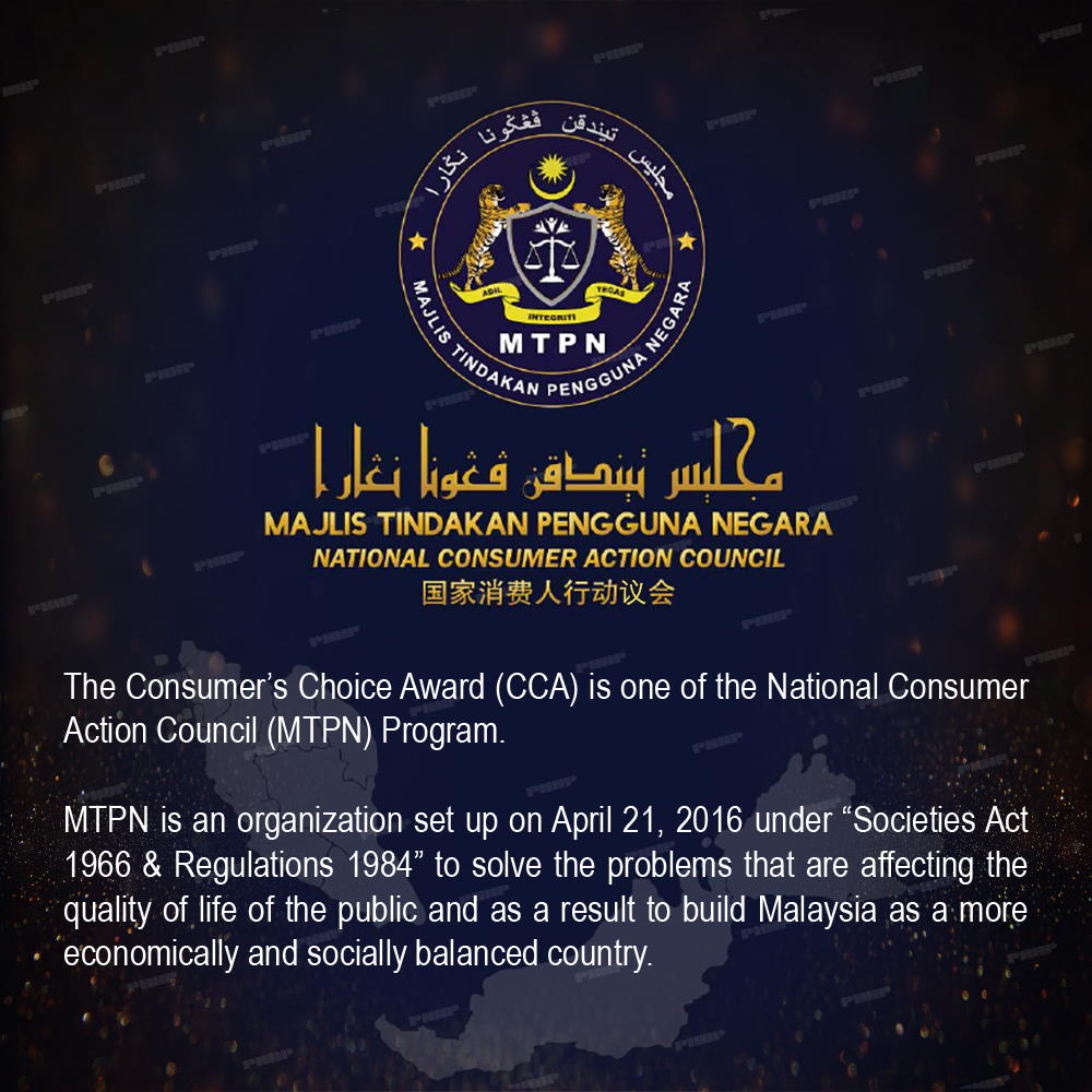 The Consumer’s Choice Award (CCA) is organised by the National Consumer Action Council (MTPN) to establish and promote businesses that exemplify superior customer services, integrity and professionalism, as well as helping consumers across Malaysia to make better purchase decisions and choose the best products.