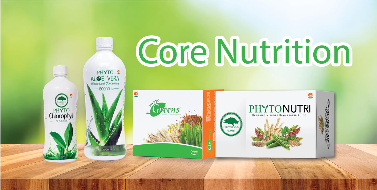Besides targeted nutrition, there is also core nutrition. Core nutrition is to help maintain our overall well-being, such as Phyto Chlorophyll, Phyto Aloe Vera Whole Leaf Concentrate, PhytoNutri and Phyto Greens.