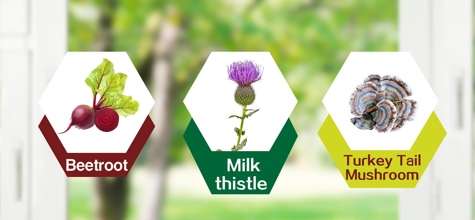 Milk Thistle is well known for the properties of liver protection and detoxification. In addition with Beetroot and Turkey Tail Mushrooms, they can help nourish our liver. Amongst them, beta-glucan is an antioxidant which may help to protect the liver against bacteria and viruses.