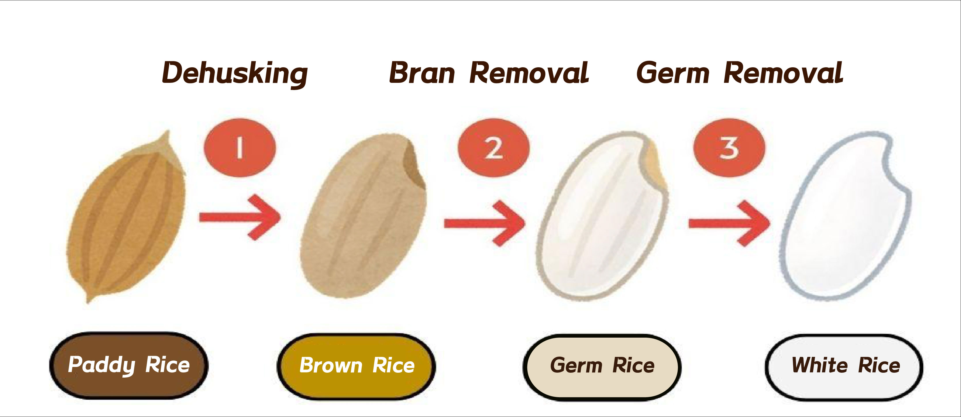 Brown rice, germ rice, and white rice that commonly seen in stores are all come from the same “grain.” Brown rice has the husk removed but keeps both the bran and germ. Germ rice removes the bran but keeps the germ, while white rice has both the bran and germ removed. Among these, brown rice offers the highest nutritional value due to its rich fiber and vitamin content.