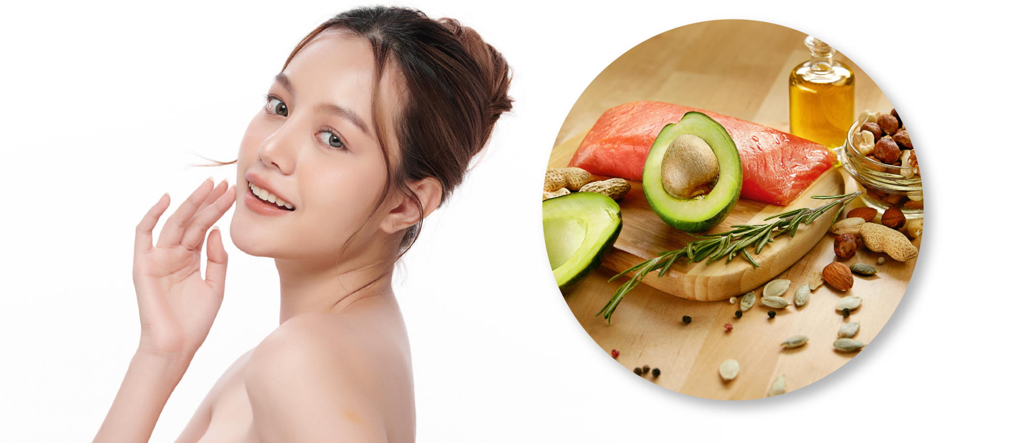 Adding healthy fats to the diet is essential to maintain skin elasticity and moisture. Especially foods with Omega-3 fatty acids, such as fatty fish (salmon, mackerel), avocados, nuts and seeds, which help to nourish the skin from the inside, reduce inflammation and make the skin plump and smooth.