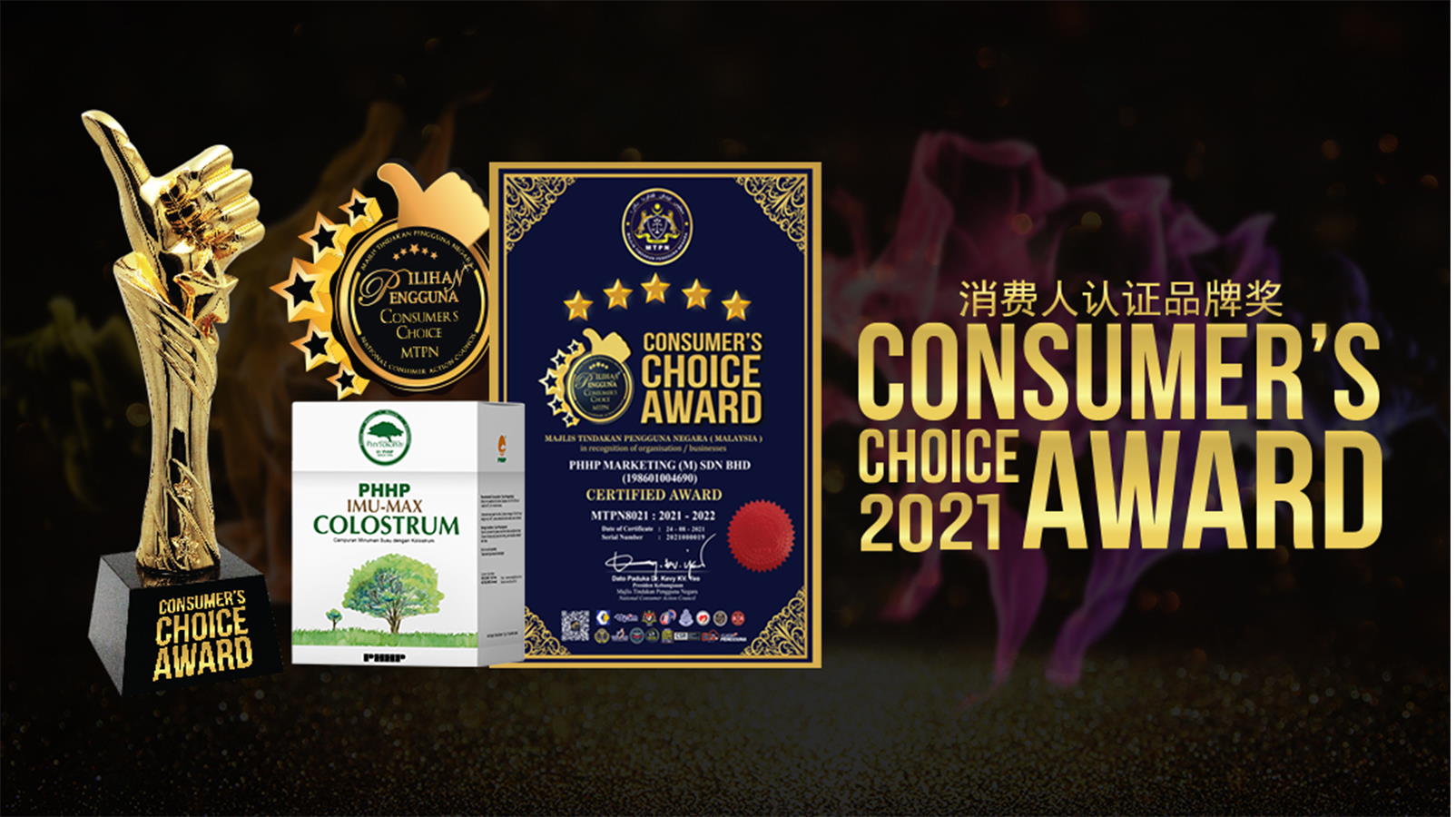 We are happy to announce that PHHP Imu-Max Colostrum has been awarded “Consumer’s Choice Award 2021”. This award is presented by the National Consumer Action Council (MTPN). This award indicates the continuous support and heartening affirmation given to our brand by fellow customers.