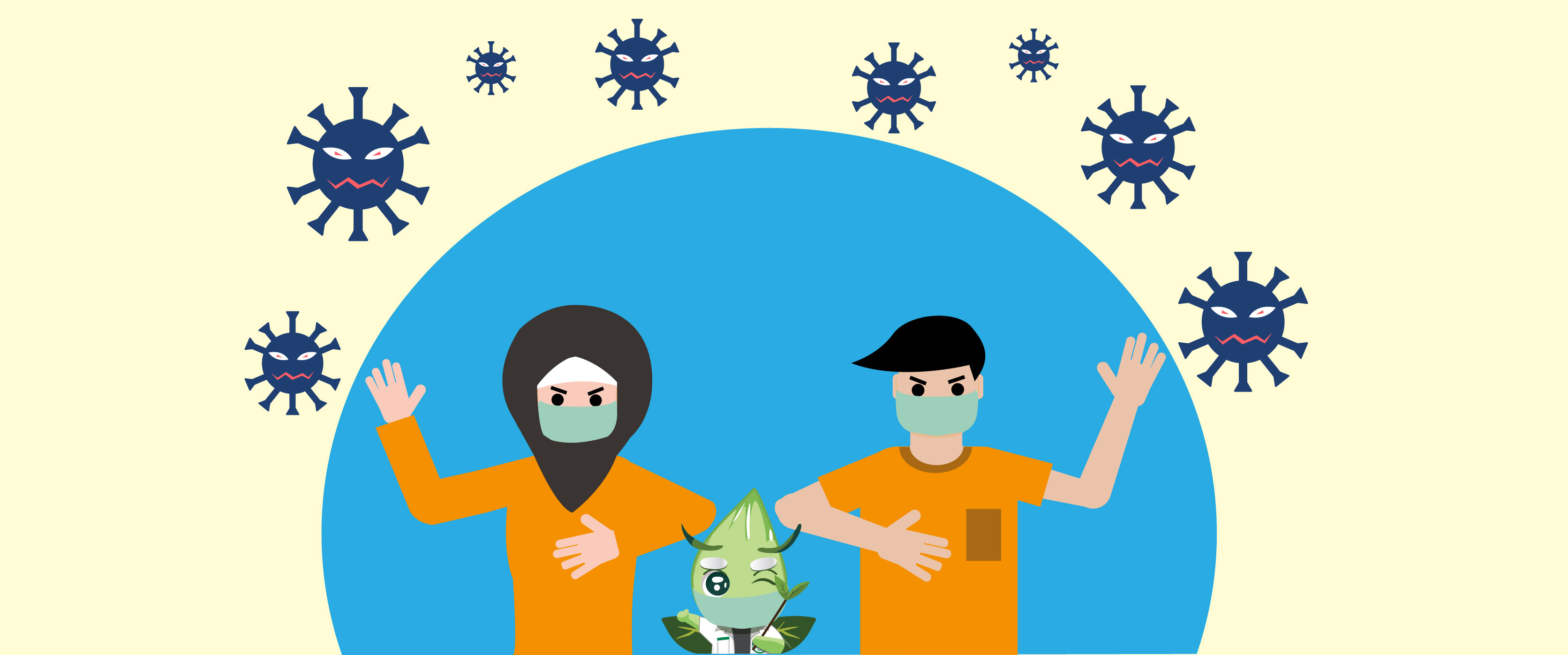 · Pakai pelitup muka di tempat sesak atau ruang tertutup.