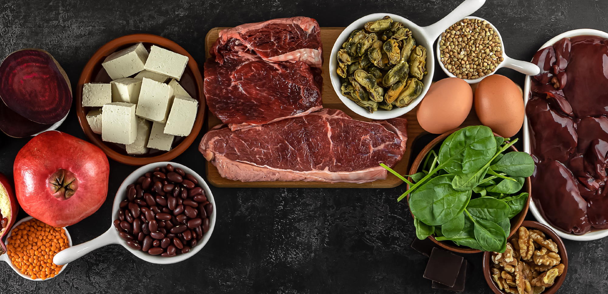 Pengambilan zat besi yang secukupnya boleh membantu meningkatkan kandungan oksigen di dalam sel darah merah. Ketidakcukupan zat besi akan menyebabkan anemia kekurangan zat besi, di mana ia akan mengakibatkan kekurangan kandungan oksigen di dalam darah kita. Oksigen darah yang rendah akan menjejaskan nutrient yang dihantar ke rambut kita dan akan menyebabkan keguguran rambut. Zat besi boleh didapati di dalam daging, kerang dan organ dalaman, manakala vegetarian boleh memilih zat besi di dalam sayur-sayuran hijau.