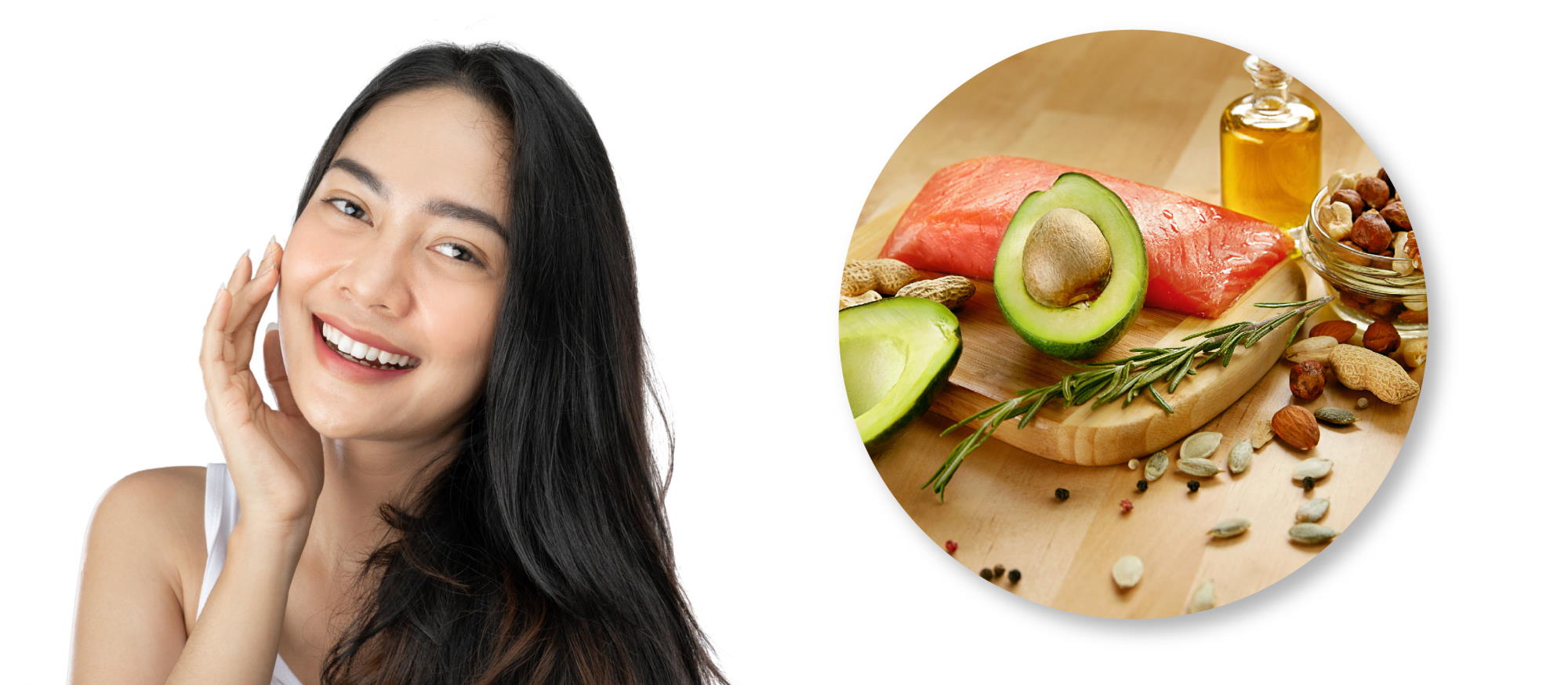Menambah lemak sihat dalam diet adalah penting untuk mengekalkan keanjalan dan kelembapan kulit. Terutama makanan dengan asid lemak Omega-3, seperti ikan berlemak (salmon, makerel), alpukat, kacang dan biji, yang membantu menyuburkan kulit dari dalam, mengurangkan keradangan dan menjadikan kulit gebu dan licin.