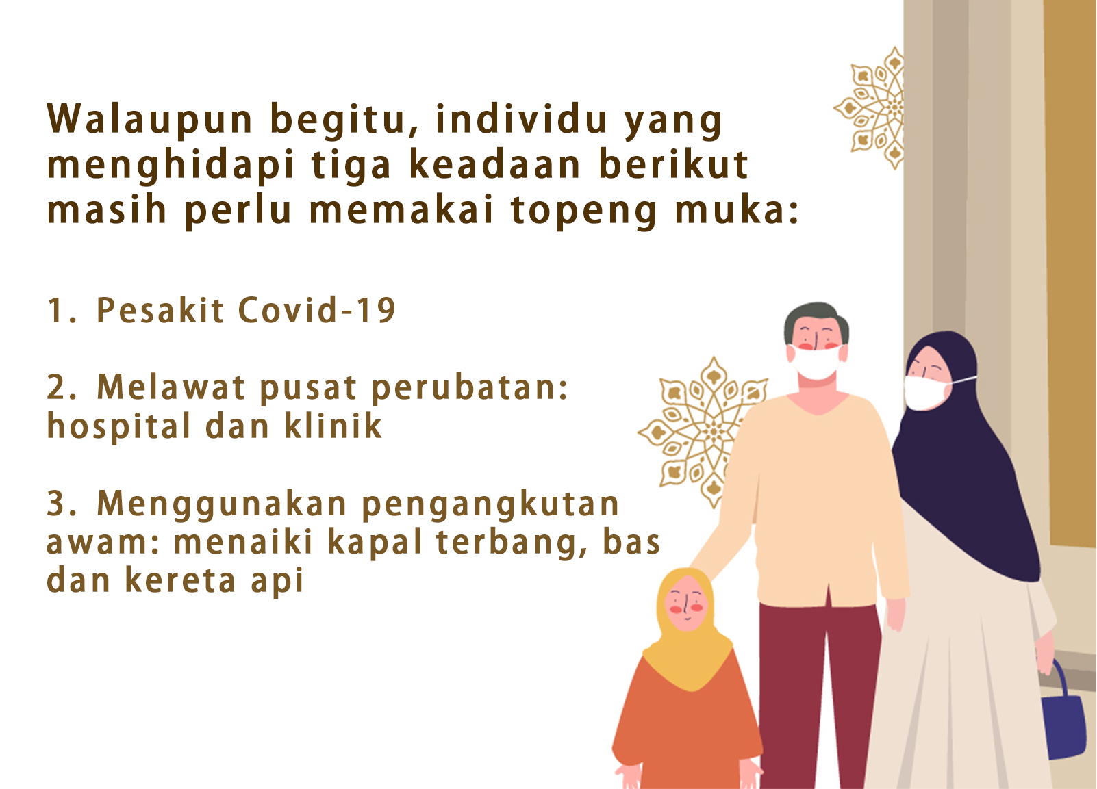 Selain itu, pemilik perniagaan juga mempunyai kuasa untuk menentu sama ada pelanggan perlu memakai pelitup muka atau tidak. Oleh itu, kita masih memerlukan penggunaan pelitup muka kerana ia masih merupakan satu keperluan harian yang sangat penting dalam kehidupan kita.