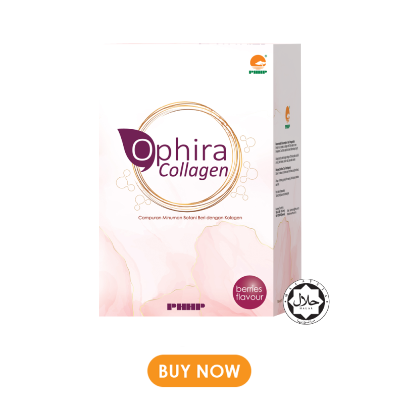 Kolagen dalam tubuh badan manusia mula berkurang pada usia 25 tahun. Kulit kita akan mula menunjukkan tanda-tanda penuaan. Kita tidak boleh menghentikan proses penuaan tetapi kita boleh mencari cara untuk melambatkan proses tersebut. Pengisian semula kolagen setiap hari melalui makanan yang kaya dengan kolagen dapat membantu untuk menyokong kulit yang berseri, rambut yang lembut dan menguatkan kuku dan sendi. PHHP Ophira Collagen diformulasikan daripada peptida kolagen ikan laut dan ianya mudah diserap oleh tubuh badan manusia. PHHP Ophira Collagen memberikan anda sokongan kecantikkan yang terbaik daripada dalaman hingga ke luar.