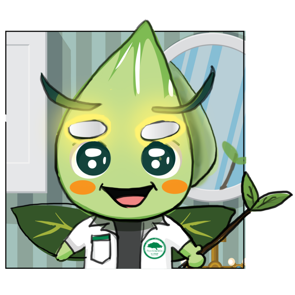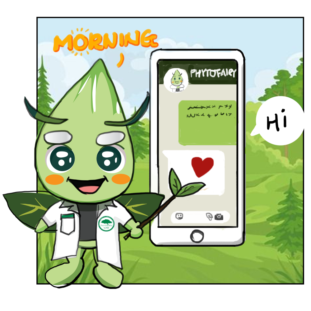 Hello! I am PhytoFairy, your health consultant. I have a pair of herbal wings which are made of herbs. It allows me to fly all around the world to share health and happiness. My antenna is used to sense health needs in humans. I spend most of my time in the research laboratory with my white lab coat, to develop more herbal supplements that are ideal for humans’ health needs. My magical wand is always with me, it brings joyful magic and helps me to create new formulas. By looking at my white and thick eyebrows, you can tell I have gained wisdom and health knowledge through the years!