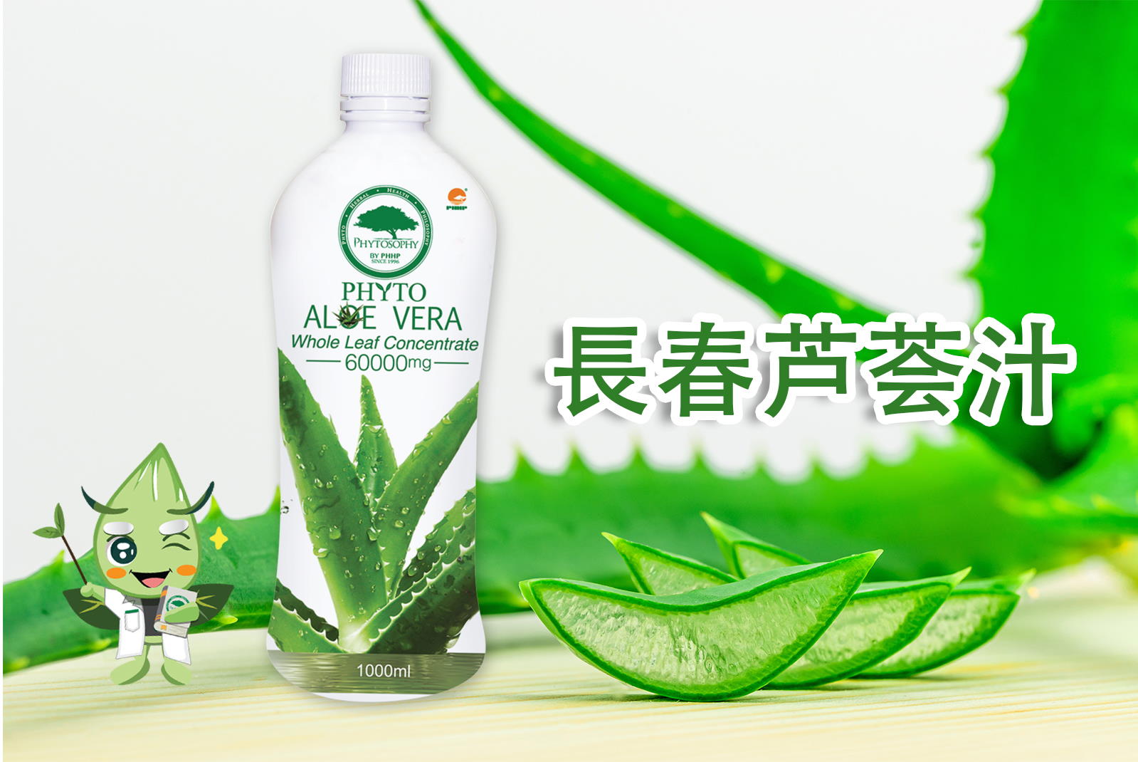 ⻑春芦荟汁不但拥有以上芦荟的天然好处,⽽且还含有全叶⾼倍浓缩芦荟精华(60000mg)。研究证明全叶芦荟拥有多达 75 种不同的活性成分及营养素,因此采⽤全叶芦荟将帮助我们获取更多的营养价值。