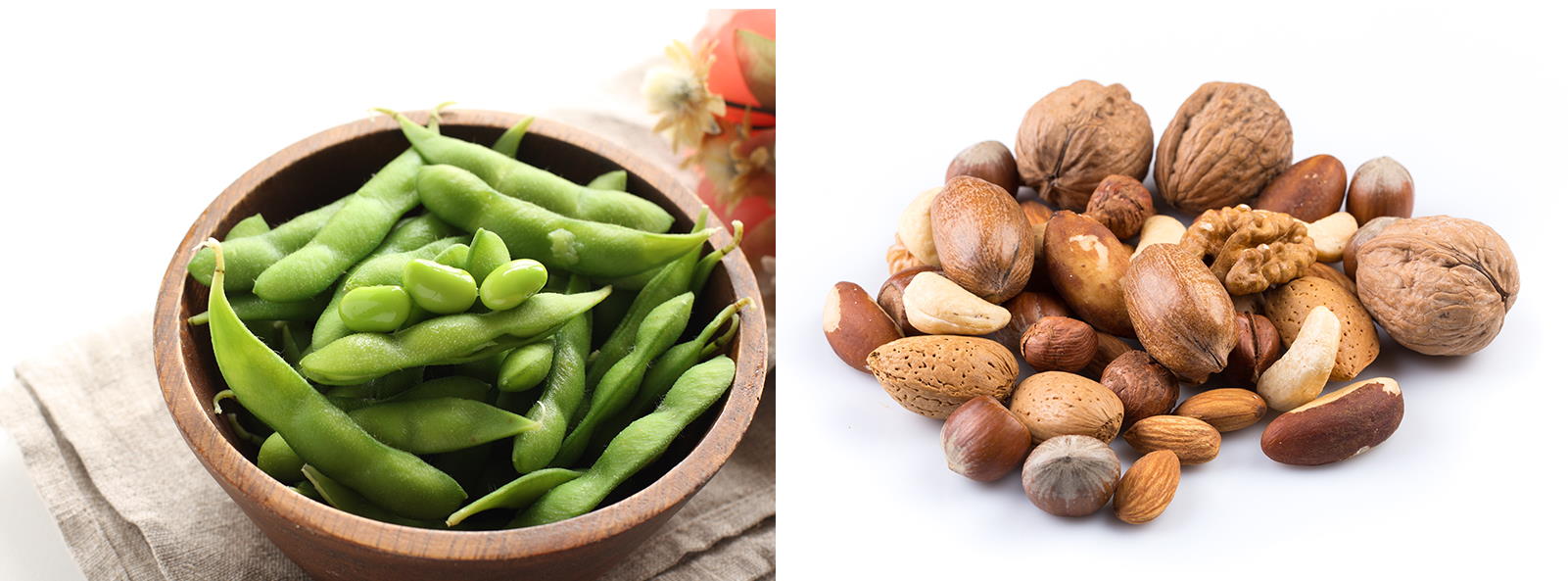 尽量以不过度加工的食品为主,这样才可以摄取到食物中的膳食纤维、维生素、矿物质等等的营养素。如:毛豆、无盐或无调味坚果。