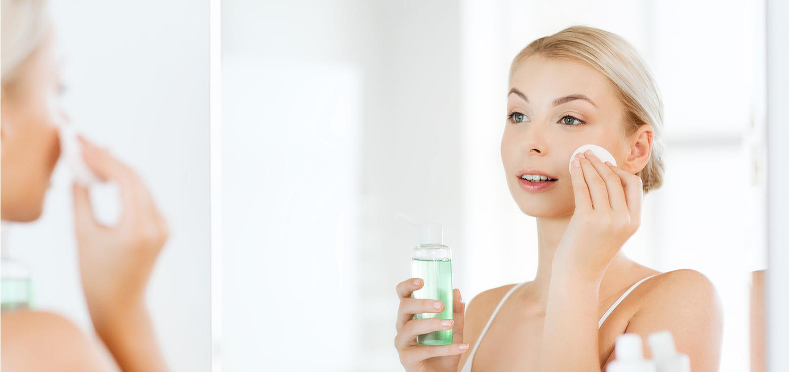 正确示范:将爽肤水适量倒在化妆棉上,轻轻的由内往外、下往上的方向涂抹脸部和颈部。这个方法还能起到二度清洁的作用。