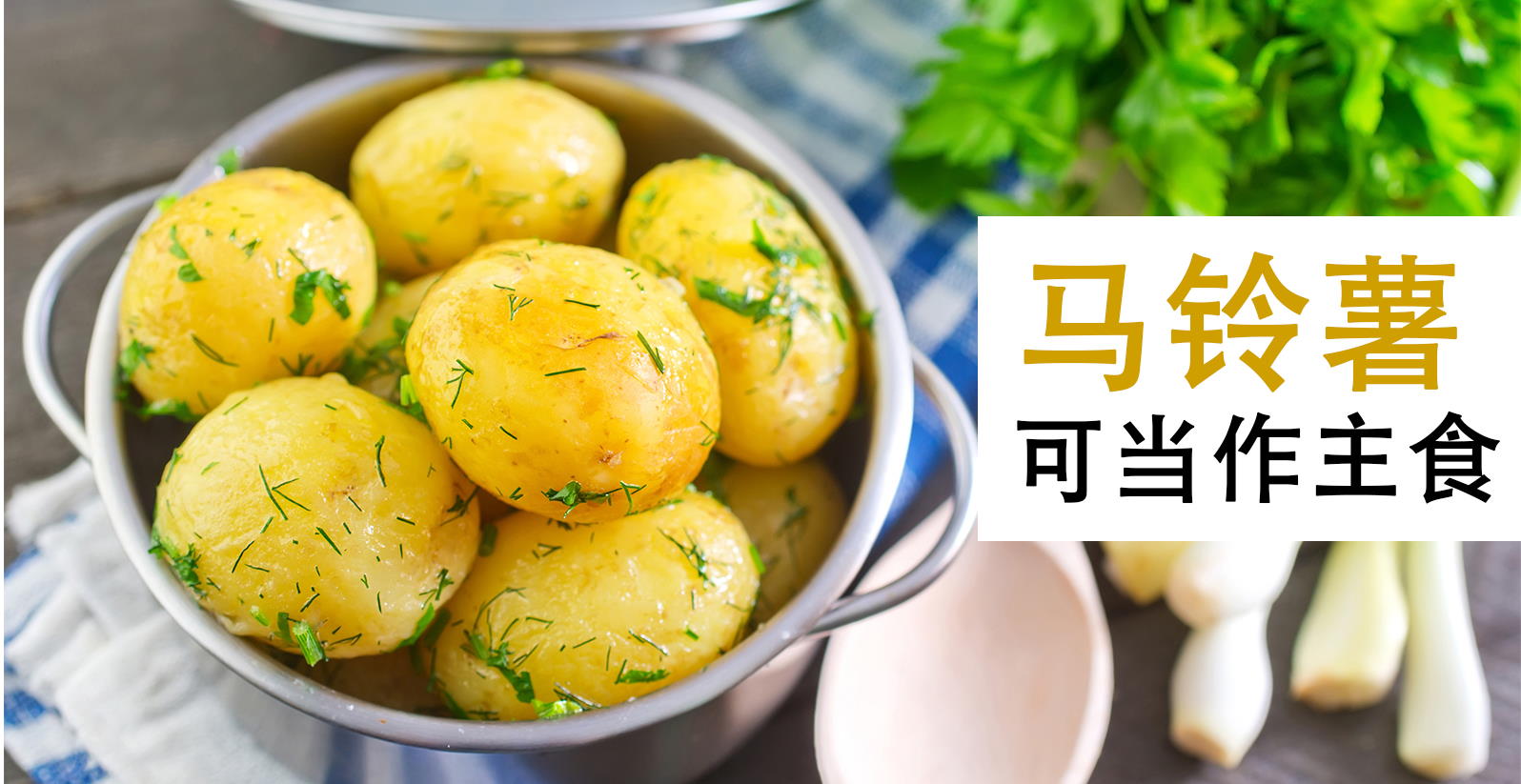 马铃薯的淀粉含量为17%左右,而蒸好的米饭淀粉含量则为26%左右。相比之下,凡吃两口马铃薯就好似等同于吃一口饭了。吃马铃薯的同时,我们需减少其他主食的摄取,并增加多叶绿色蔬菜的摄取量。