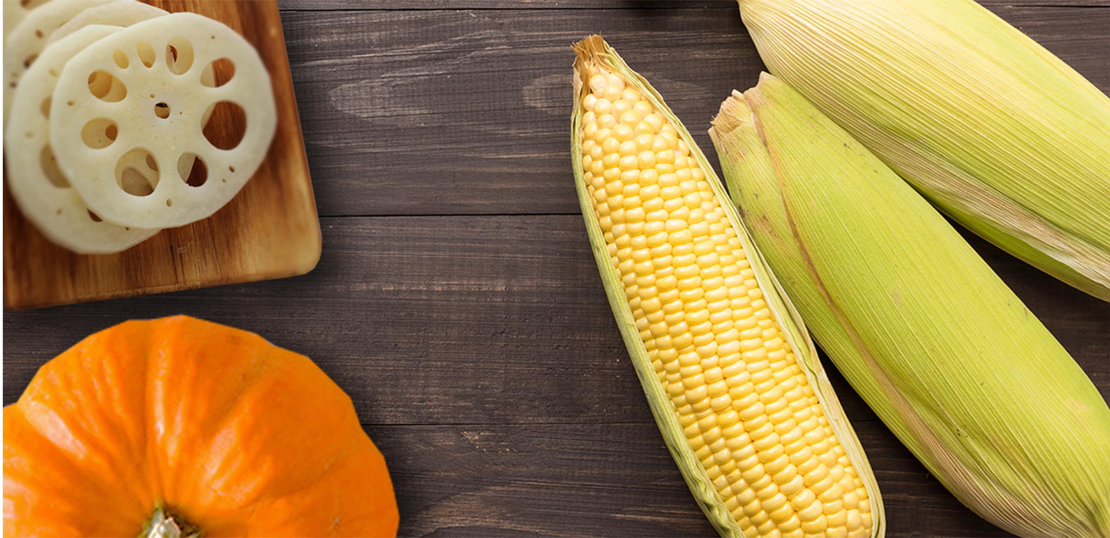 玉米也常被人们误以为是蔬菜,但它其实也属于谷类。成熟的玉米所含有的淀粉量比较高,一根玉米就类似于半碗饭的热量了。另外,莲藕和南瓜等吃起来口感绵密且带点甜味,这类食物多含有淀粉,但相对于薯芋类来说,它的热量会更低一些。