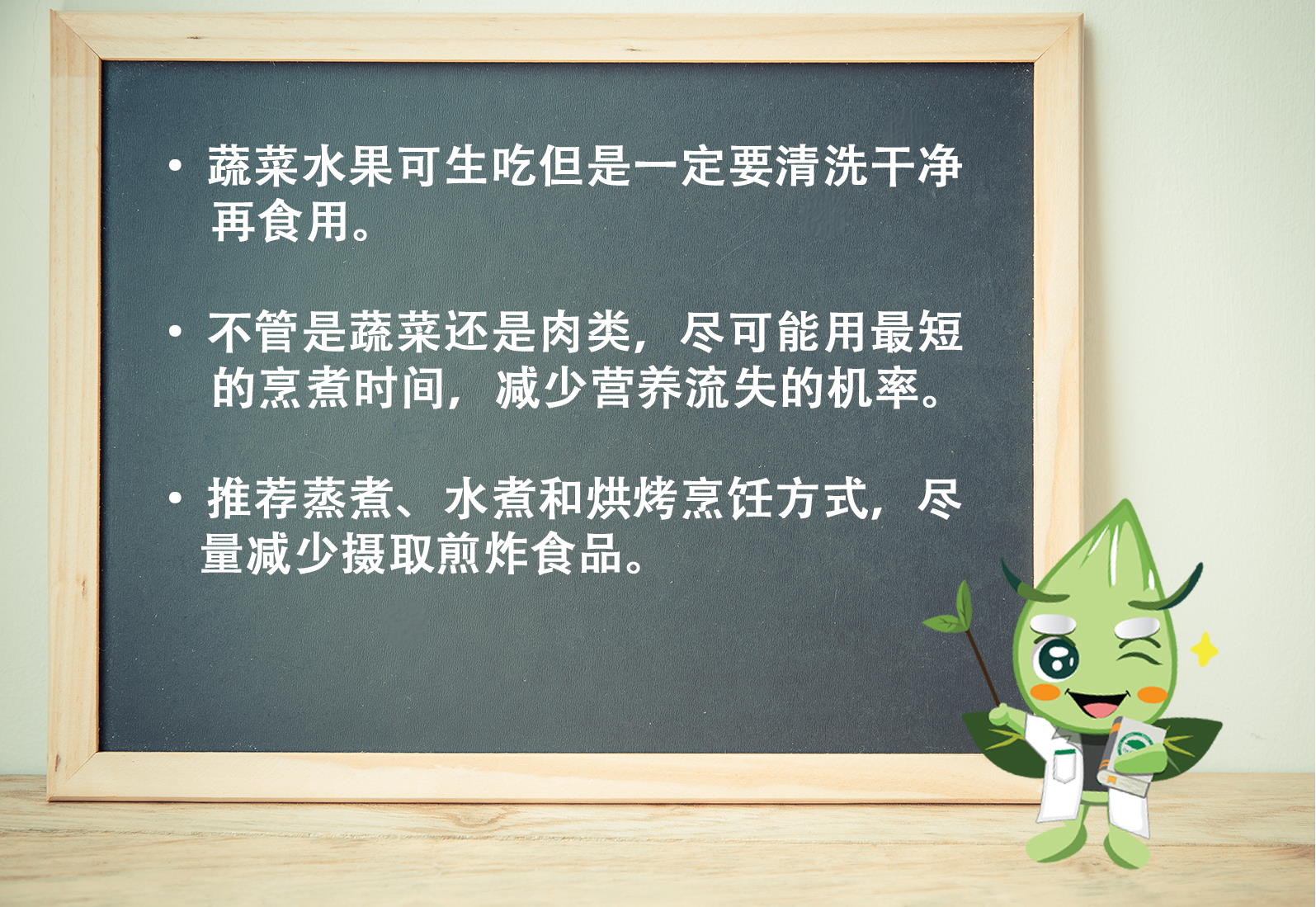 每个烹煮⽅式都有它的利与弊,选择天然⻝材,选择较健康的烹饪⽅式,再控制好油、盐、糖的调味量,就能掌握好吃得健康的精髓。⼀种⻝物多种煮法,你学会了吗?