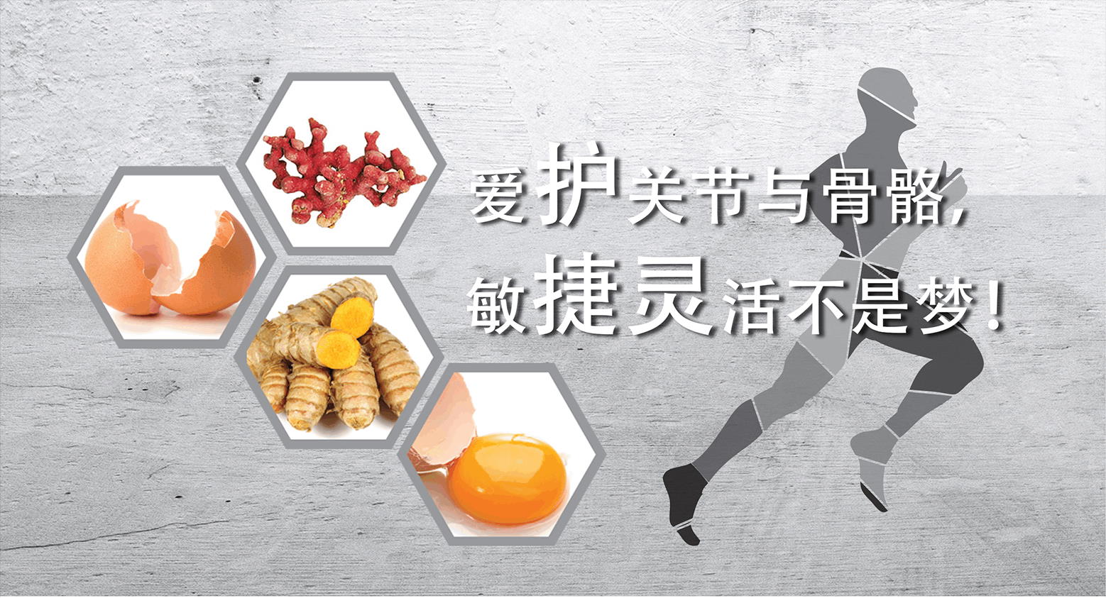 萃取于蛋壳内的薄膜。它提供修复关节所需的营养,从而帮助改善关节灵活度与活动力。